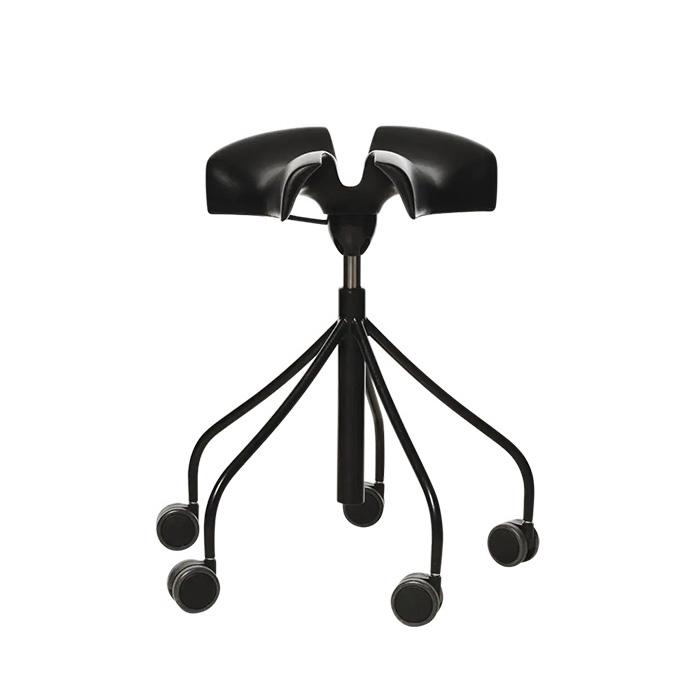 This is one product that has been unique for many years. The Binaria was developed by the doctor, Jordi Badia in co-operation with the industrial designer Otto Canalda. It is not simply a stool, it is a seat designed on well researched medical principles. It is highly recommended for any activity where you have to sit down, but at the same time you are required to maintain certain mobility. Especially in the work place. The development of the Binaria has been based on detailed ergonomic and anthropometric studies. For any occupation, be it a dentist ro a supermarket cashier, the patented shape of the seat guarantees the healthiest position of the backrest in relation to the legs. This being 135°. The characteristic split in the centre of the seat ensures the legs of the user are positioned in the most natural way, creating both stability and good hip articulation, Binaria is work seat that feels really good. In actual fact the design is well proven. It was first launched in 2003 for the company Oken which does no longer exist. Bd Barcelona Design have now added this product to their range. Structure in painted tubular steel. Seat in injected. Polyurethane gas piston of 200 mm in metallic finish. Nylon castors with grey rubber cover. The seat is available in three finishes: white, black and red.