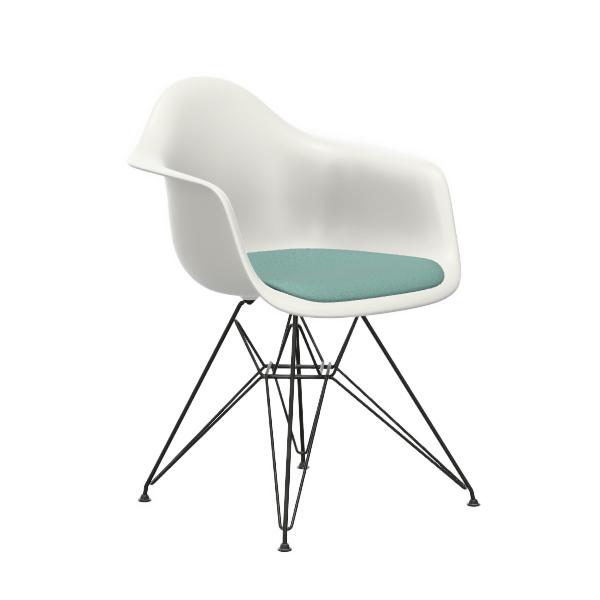 VITRA Eames Plastic Armchair with cushion and black base DAR NEW DIMENSIONS (White, cushion mint/ivory - Polypropylene, varnished steel and Hopsak fabric)