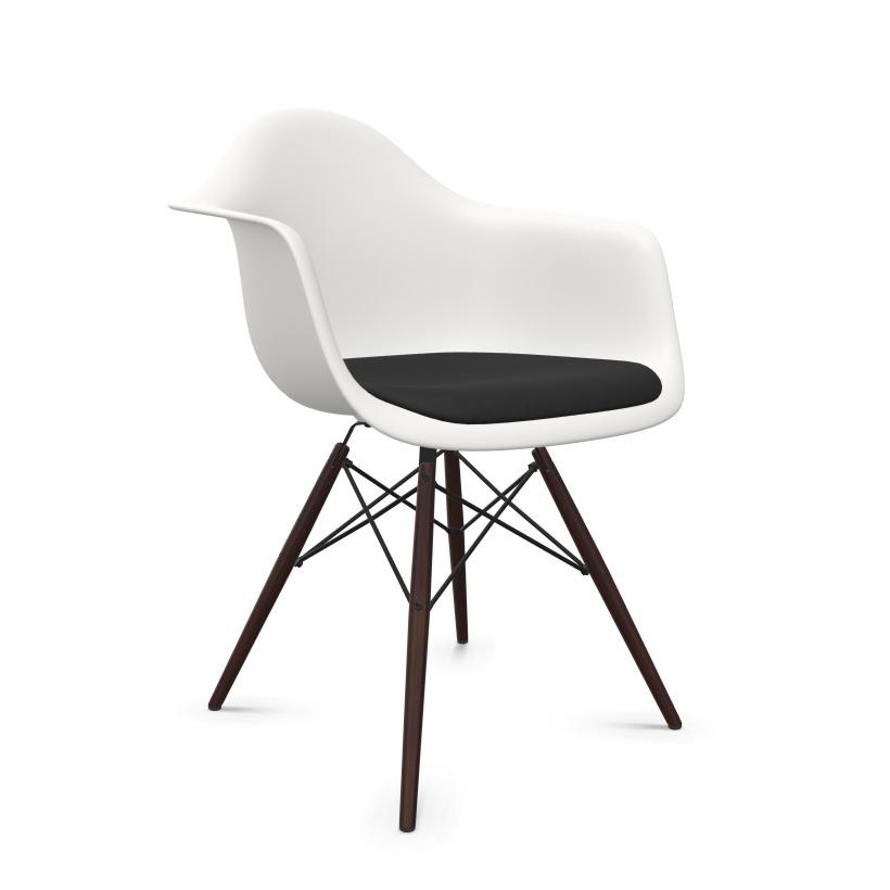VITRA Eames Plastic Armchair with cushion and dark maple base DAW NEW DIMENSIONS (White/cushion black - Polypropylene, wood and Hopsak fabric)