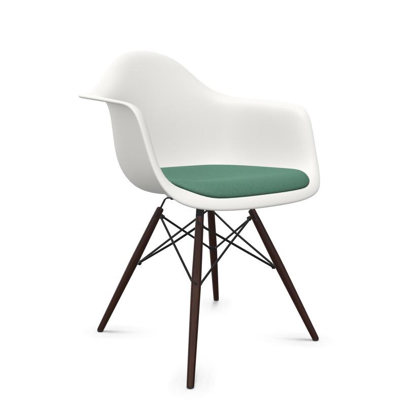 VITRA Eames Plastic Armchair with cushion and dark maple base DAW NEW DIMENSIONS (White, cushion mint/forest - Polypropylene, wood and Hopsak fabric)