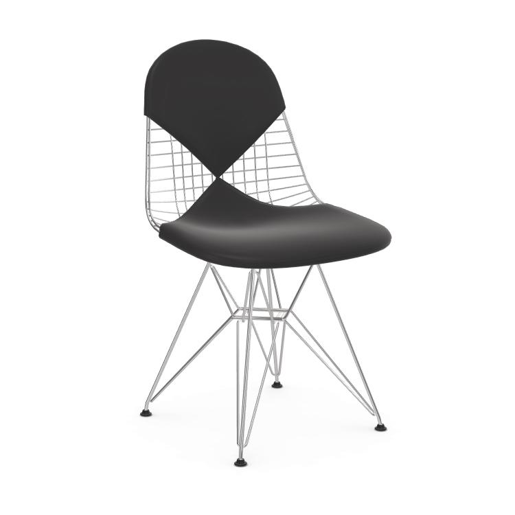 The Eames Wire Chair is a variation on the organically shaped one-piece seat shell, boasting a light transparency and high technicality.The Eames Wire Chair is a variation on the organically shaped one-piece seat shell, boasting a light transparency and high technicality.pholstery is sometimes referred to as a "bikini".DKR = Dining Height K-Wire Shell R-Wire Base.