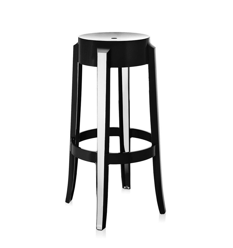 KARTELL stool CHARLES GHOST height 75 cm (Glossy black - Coloured polycarbonate)