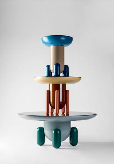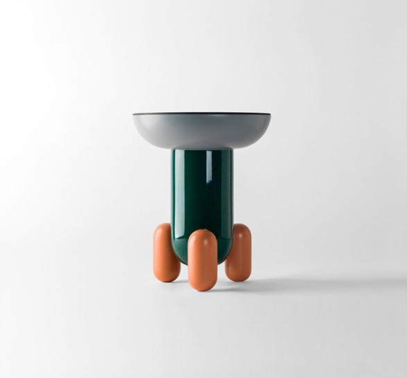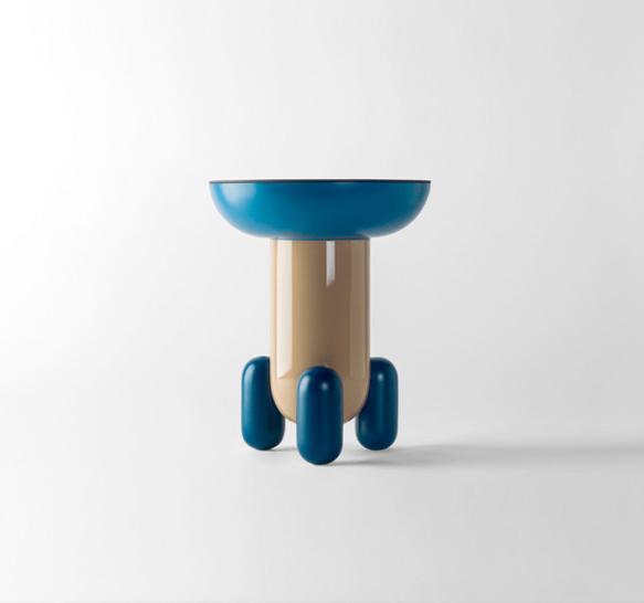 A series of side tables, Explorer 1, 2 and 3 inspired by the playful and what remind one of jelly-beans, rounded sweets that that children eat in the US. This childlike inspiration has at the same time a very elegant beauty which generally is characterised in my designs. It’s about new shapes, different objects within the market that want to convert into emblematic pieces because these tables are not only functional but sculpturally strong. Painting some of the parts with a gloss finish and others in matte at the same time, reflective top surfaces and the different combinations of colours give an even more richness to the collection which pretends to be blatantly decorative. They are pieces that communicate. Maximum load on the table: 8kg. BD recommends not to sit on the table.