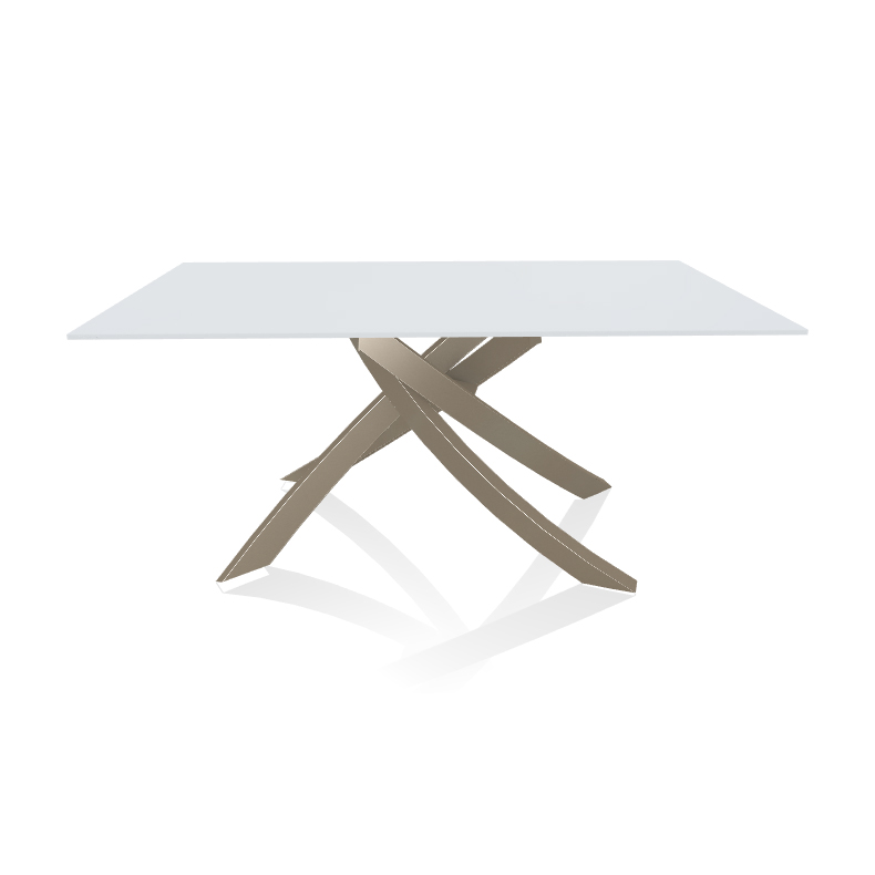BONTEMPI table with sand frame ARTISTICO 20.13 160x90 cm (Anti-scratch white matt - Glass top and structure in sand lacquered steel)