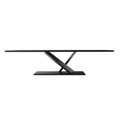 An iconic table, Element Desalto is a symbol of purity and poetry, the essence of the visionary designer Tokujin Yoshioka's style. The central support, delicately balanced between the two horizontal elements, de es gravity, suspended between earth and sky, between the past and the future. The perfect embodiment of dynamic balance, of lightness and solidity. A design of exceptional engineering complexity which conveys the know-how of Desalto's metalworking experience. Disassembling table with steel frame, metal or MDF top, in lacquered or materic spread by hand finishings.