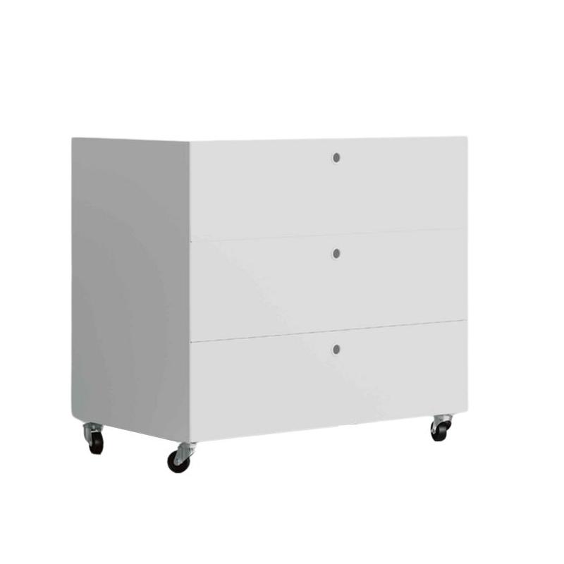 KRIPTONITE container on wheels with 3 drawers W 75,5 cm (Matt white - aluminium and wood)