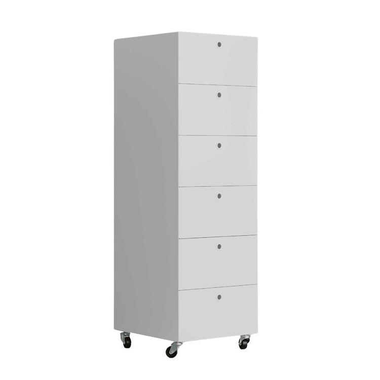KRIPTONITE container on wheels with 6 drawers W 40 cm (Matt white - aluminium and wood)
