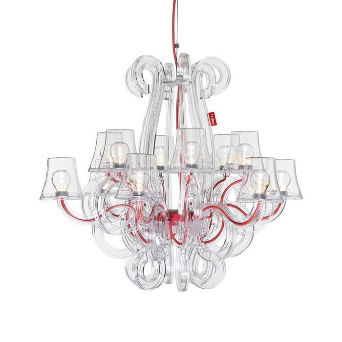 Dutch designers DeMakersVan inspired to the "Slow Baroque" of the 18° century and to the Rococo masterpieces, reintroducing in an amusing and original way the traditional Baroque chandelier in our modern environments. Technological and aesthetical Challenge, RockCoco Fatboy is realized in transparent polycarbonate. Its strong and charismatic personality is the ensemble of Baroque style and ultramodern materials.