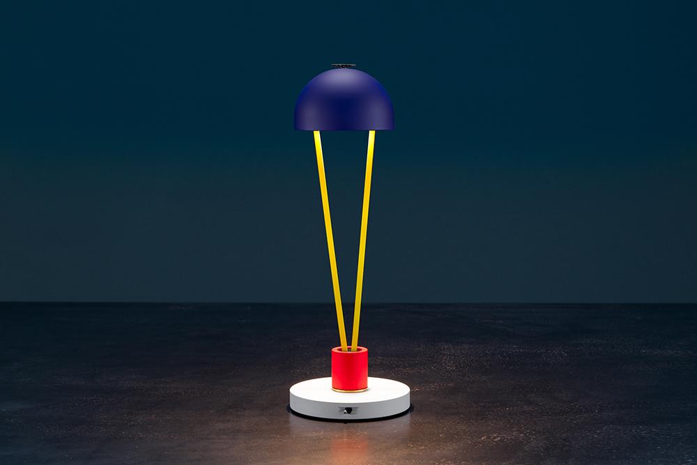 Ale BE T Catellani & Smith is a wireless, battery-operated table lamp, so it can be moved around any setting. Blue, yellow and red join fluo shades of pink, yellow, blue and orange, colouring hemispheres, rods, bases and surprising details that bring a lively touch to settings. The hemisphere is the hallmark feature of the new Ale range, composed of four different models: BE T, C, BIG and W, characterised by the unexpected detail of the fly resting on the hemisphere. Aluminium base and tubes, iron dome, brass and steel details. LED board 1x1,5W / rated output 1,5W / energy class D / lumen 219 / K 2700 / CRI >80. Li-iON 3,7V 4100 mA/h battery. USB charger with EU plug input 110/240V - output 5V@1.2 A (not available with other plugs) on/off toggle switch on the base.