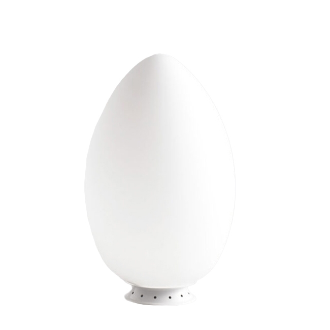 The table lamp UOVO designed for FONTANA ARTE has a natural shape that has always been a symbol of perfection, the harmonious combination of symmetry and asymmetry. An ironic idea that is a winner. As in nature, also in the Uovo lamp, the shell is the epitome of lightness: an elegant shape in frosted white blown glass that evenly diffuses a warm, welcoming light. Also available in an outdoor version.