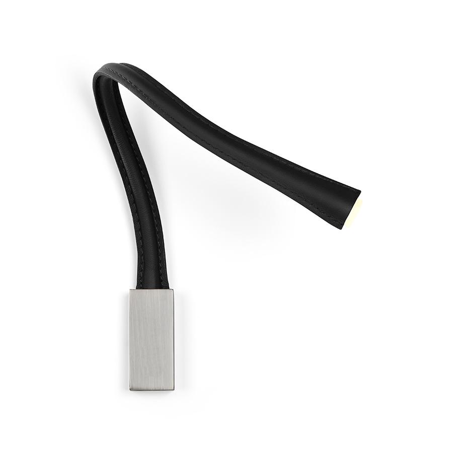 CONTARDI wall lamp FLEXILED in leather without switch (Black, arm 60 cm - Leather and satin nickel)