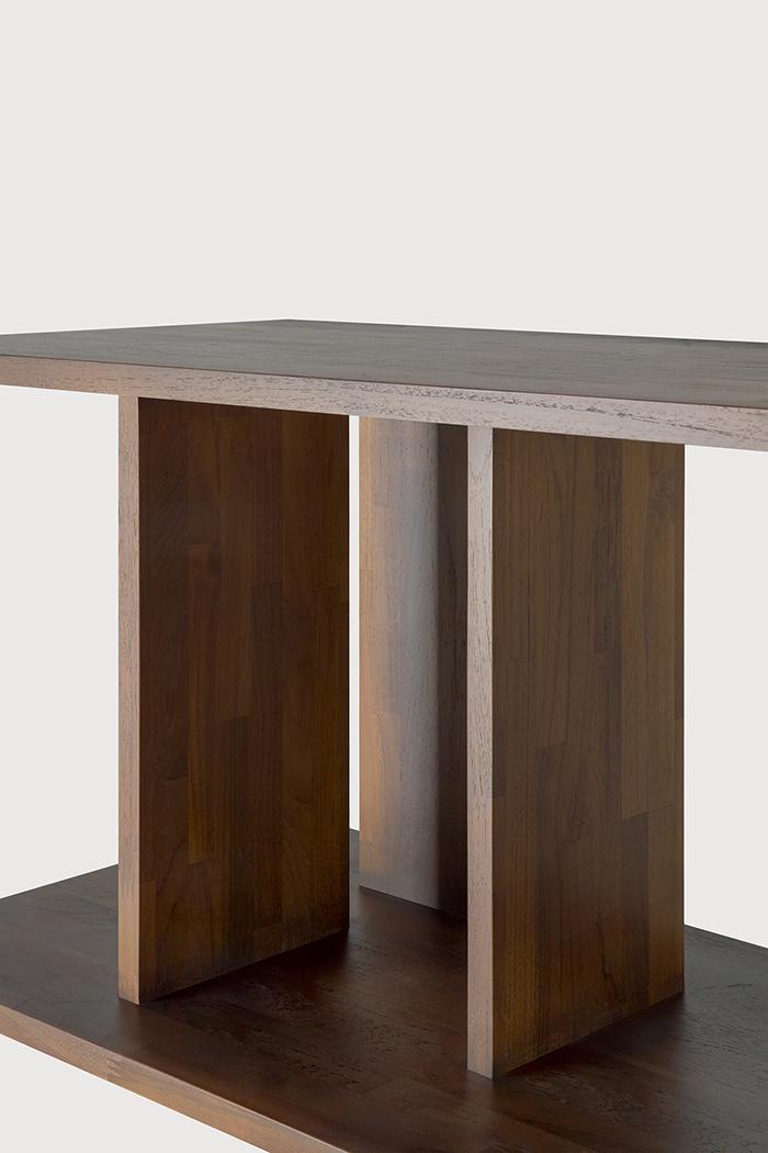 Celebrating rhythmic simplicity. The Irregular rack is a storage solution offering more. Use as a stylish and practical shelving system against a wall, or as a clever room divider with a point of difference, standalone or place in multiples to complete a space. Made from brown-tainted solid FSC-certified teak with a varnish finish.