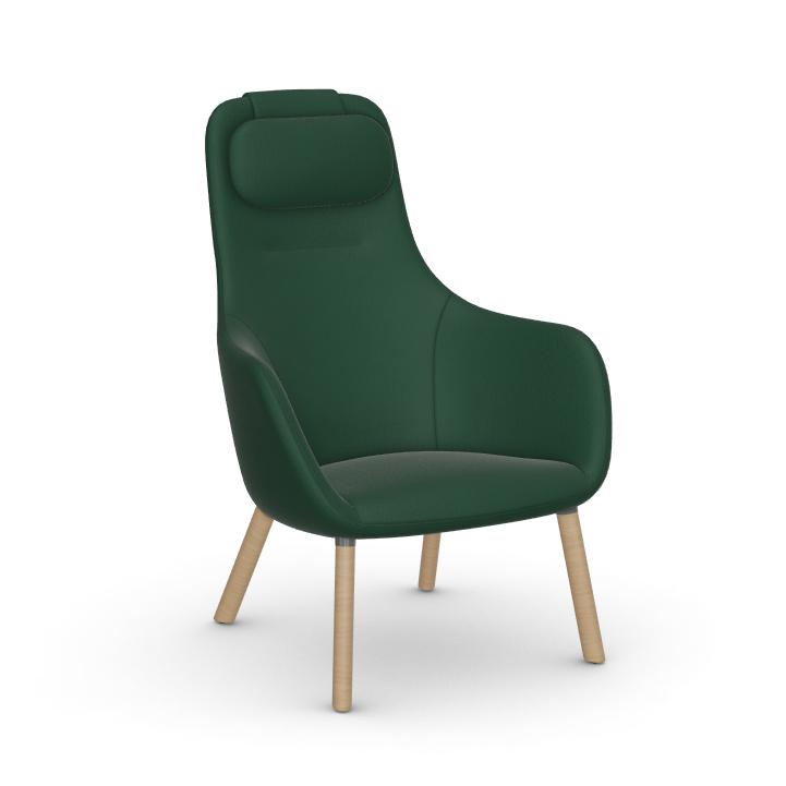 VITRA armchair HAL LOUNGE CHAIR in Credo fabric (Emerald/Ivy, natural oak base with protective varnish - Fabric and wood)