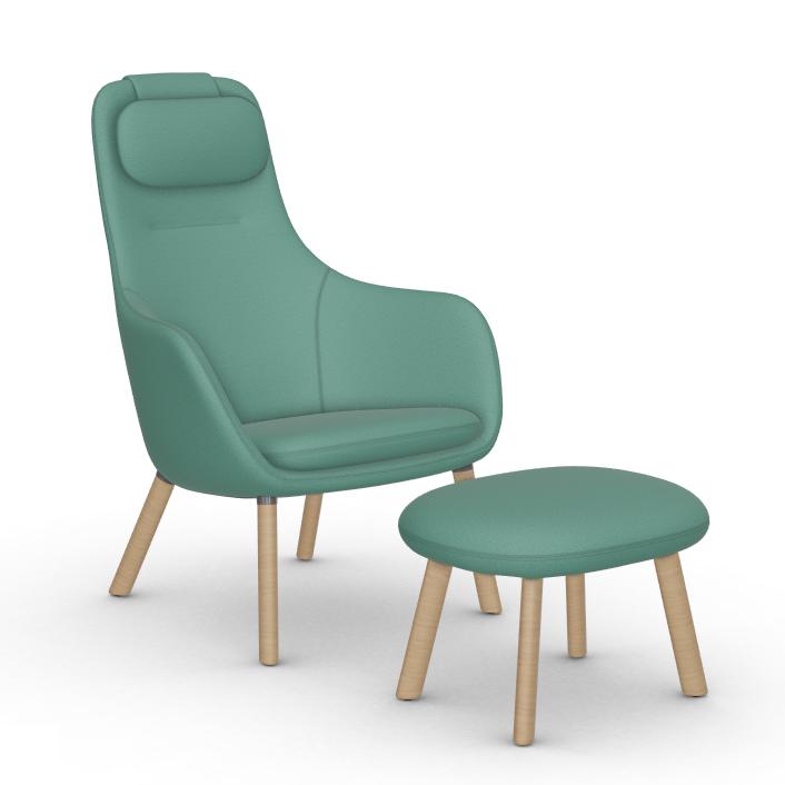 The lounge chair can be paired with the HAL Ottoman, allowing the user to enjoy its full comfort with their feet up.