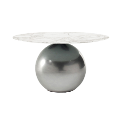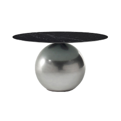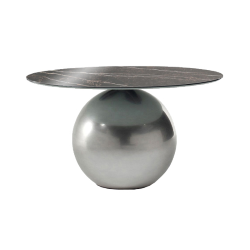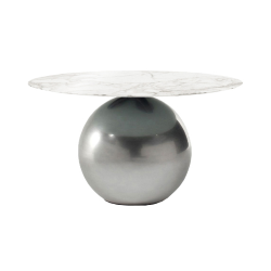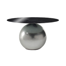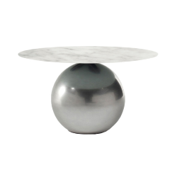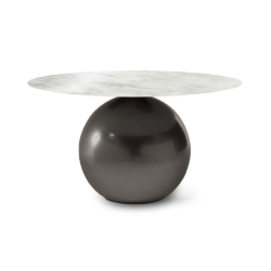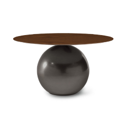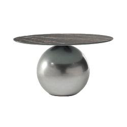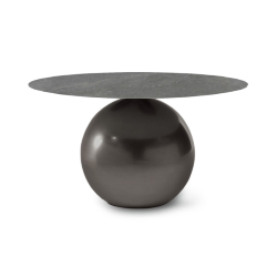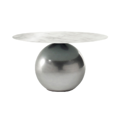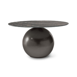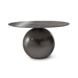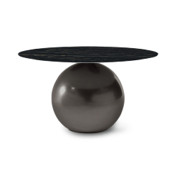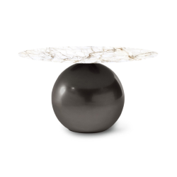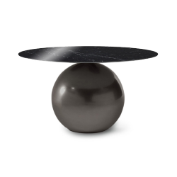 Circus Bonaldo is a fixed table which draws on the laws of physics for its contrast of quite different geometric shapes: the impressive and scenic central base is surmounted by a large disc-shaped top, evoking a pleasant sensation of movement. The table acquires strength and elegance in a unique balancing act, becoming the real protagonist of the living area. The top is available in solid wood, ceramic or marble, and it adapts perfectly to the style of the house, blending harmoniously with the environment without, however, losing its uniqueness. The metal base is available in different versions.
