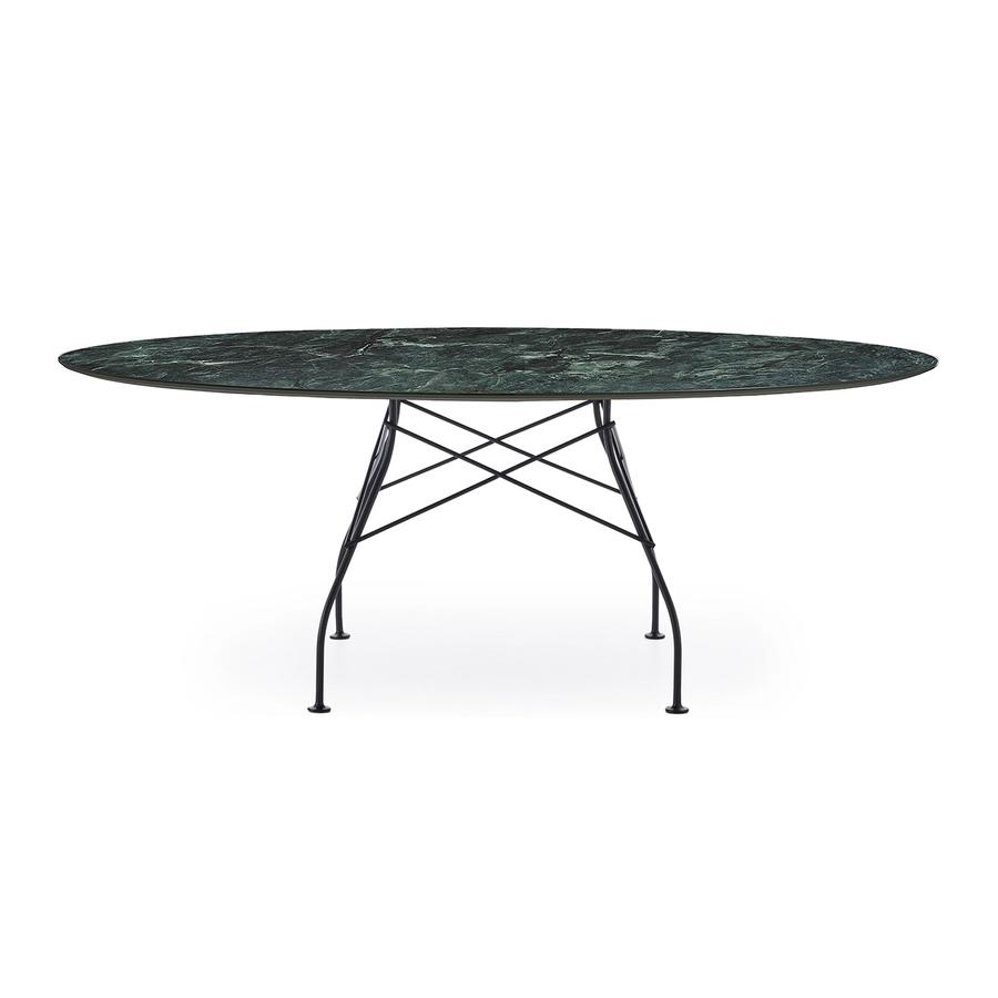 KARTELL oval table GLOSSY MARBLE 192 x 118 cm (Green - Stoneware marble finish and black varnished steel)