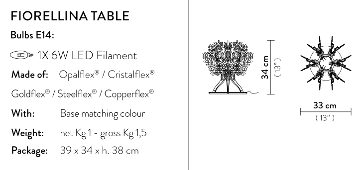 Maybe you already have flowers on the table, but why not add more elsewhere in the house? Fiorellina Slamp captures an exuberant bouquet filled with freshness and vitality. Its 24 branches amplify the effects of multiple surfaces. Available in a wide range of sizes and applications.