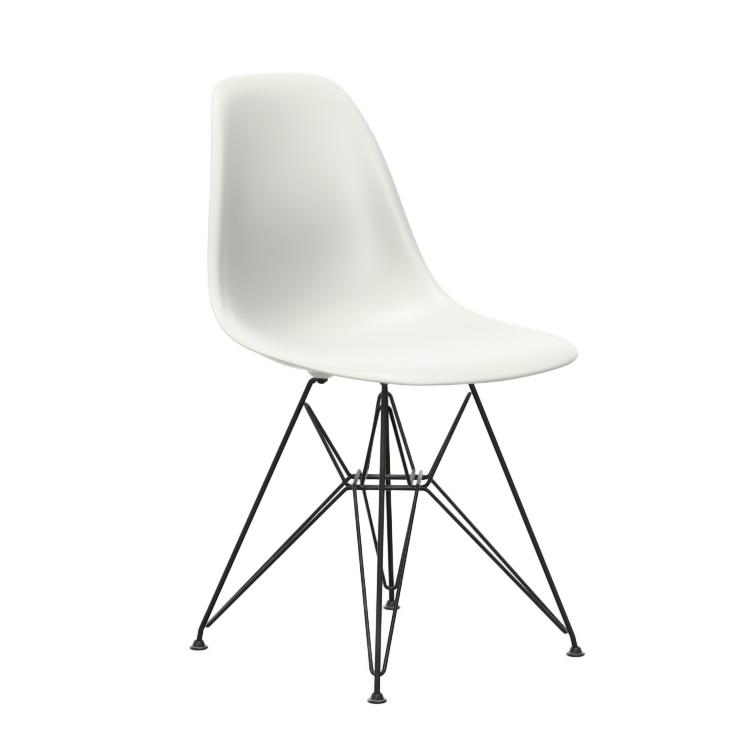 VITRA Eames Plastic Side Chair with black base DSR NEW DIMENSIONS (White - Painted steel / Polypropylene)