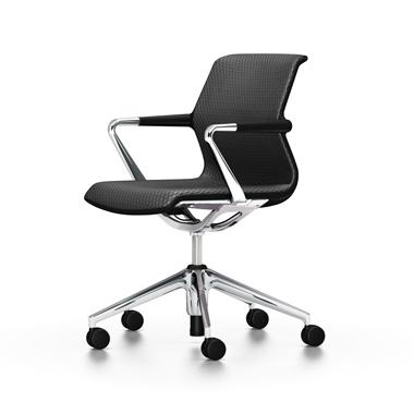 VITRA chaise de bureau avec base à 5 branches sur roulettes UNIX CHAIR DIAMOND MESH (Asphalte cadre Basic Dark - Aluminium brillant et tissu)