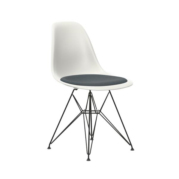 VITRA chaise avec coussin et base noire Eames Plastic Side Chair DSR NOUVELLES DIMENSIONS (Blanc, coussin bleu glace/marron marécage - Polypropylene, acier verni et tissu Hopsak)