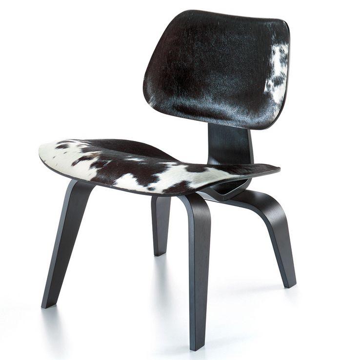VITRA chaise longue Plywood LCW Calf's Skin (Noir, Peau noire et blanche - frêne)