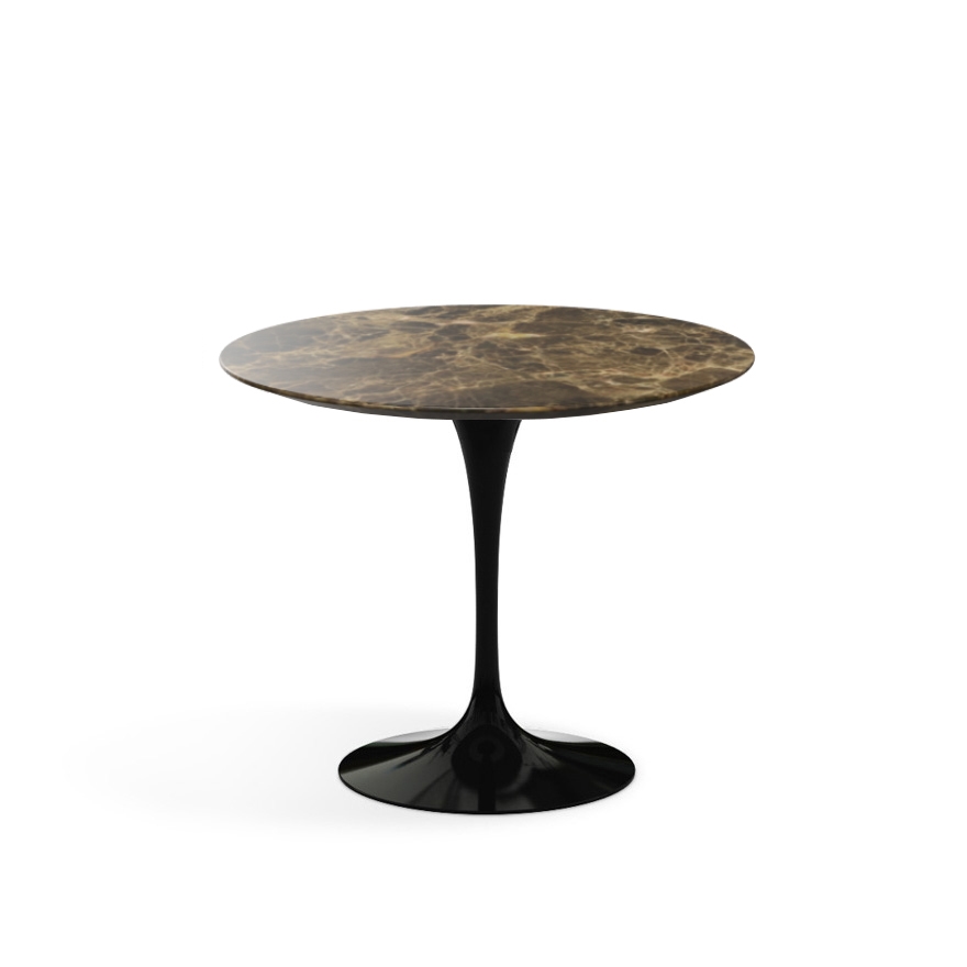 KNOLL table ronde TULIP Ø 91 cm collection Eero Saarinen (Base noire / Plateau Emperador marron - marbre et aluminium)
