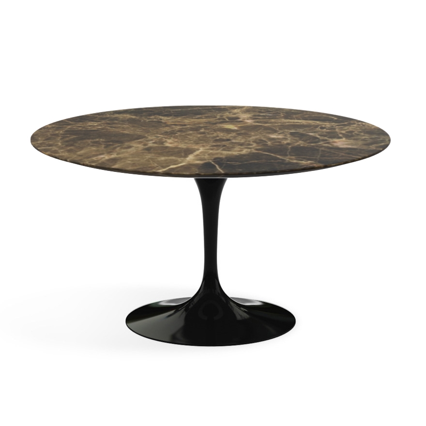 KNOLL table ronde TULIP Ø 137 cm collection Eero Saarinen (Base noire / Plateau Emperador marron satiné - marbre et aluminium)