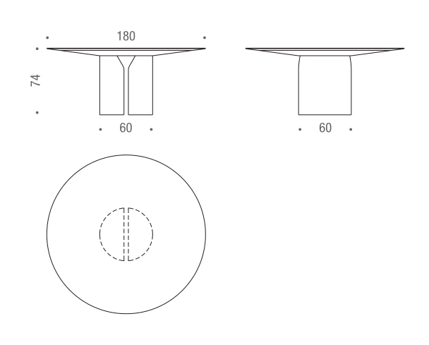 Finitions: Piétement, bride sous-plateau et plateau sont totalement finis, toujours et seulement monochromatiques, laqués ou revêtus par l'application de matériaux avec épaisseur d'environ 3mm.
