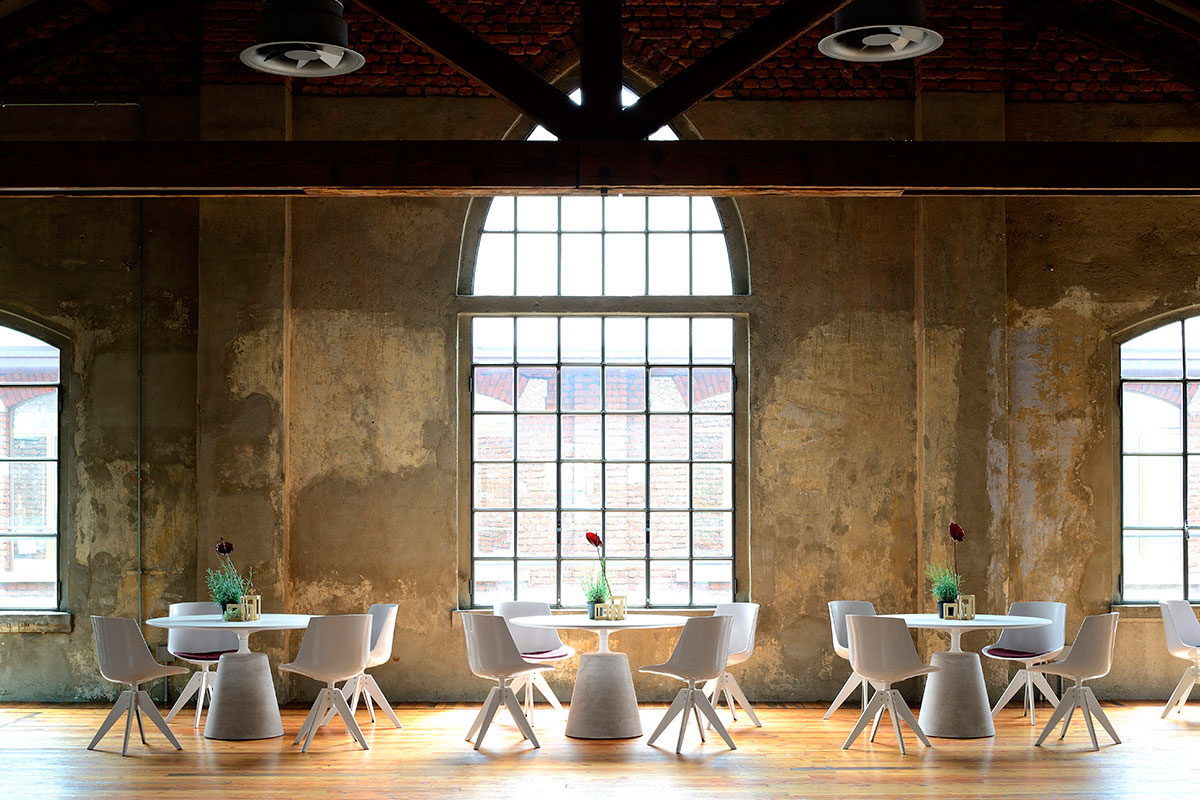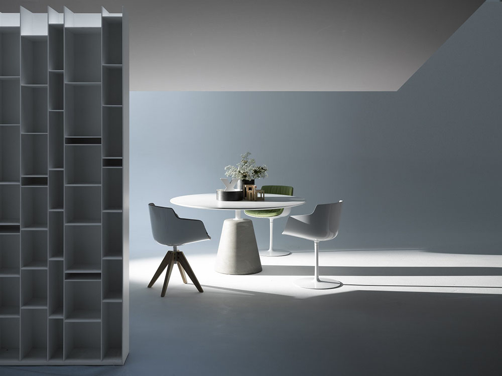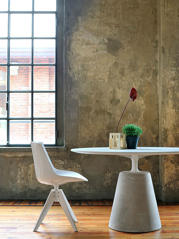 MDF ITALIA table ronde ROCK Ø 120 cm (Plateau en bois blanc opaque - Base en ciment naturel)