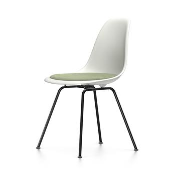 VITRA chaise avec coussin et base noire Eames Plastic Side Chair DSX NOUVELLES DIMENSIONS (Blanc, coussin ivoire/forêt - Polypropylene, acier verni et tissu Hopsak)