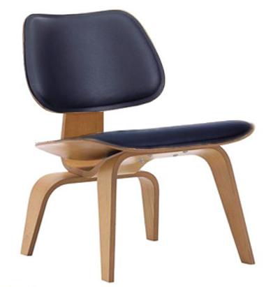 VITRA chaise longue Plywood LCW LEATHER (Naturel / Noir - frêne multi-couche / cuir)