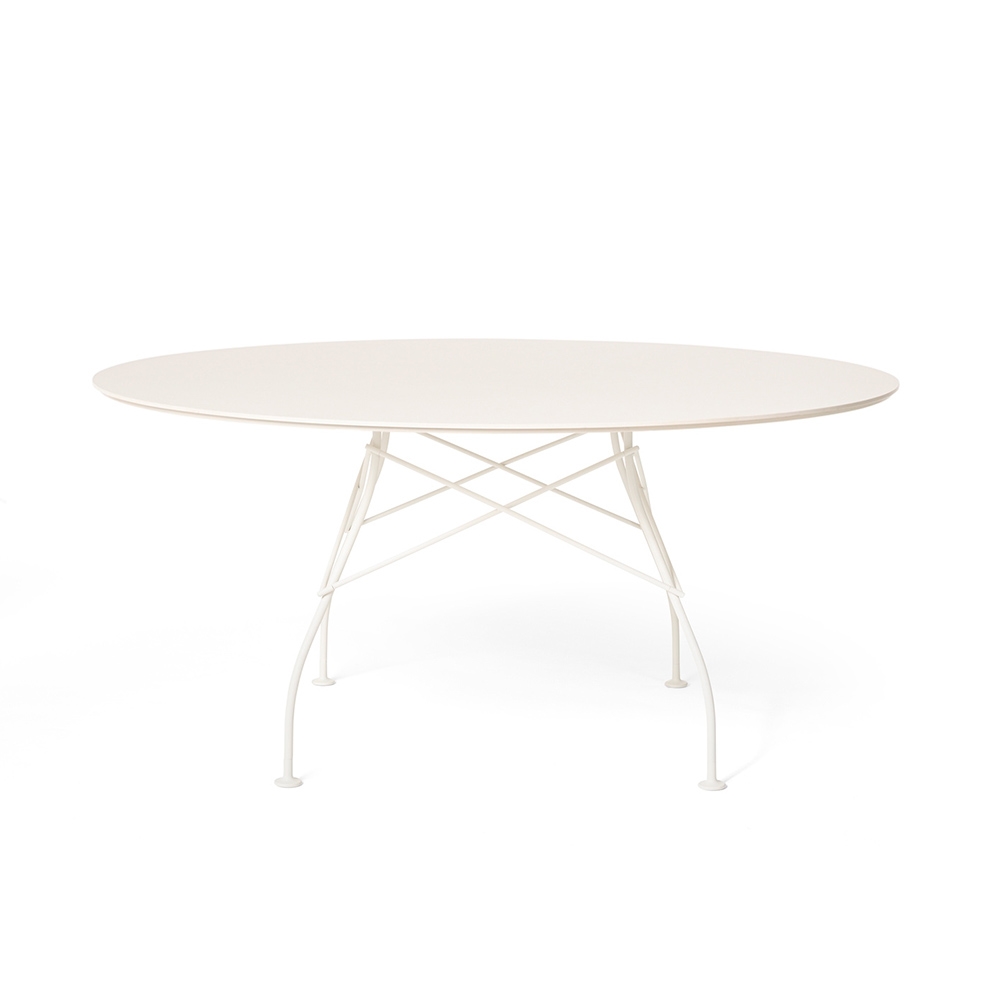 Glossy Kartell est une gamme de tables idéales aussi bien à la maison qu'au bureau. La structure légère en acier se caractérise par l’utilisation de l’élément en croix qui relie les pieds sur chacun des quatre côtés et soutient le plateau. La collection se décline dans les versions carrée, ovale et ronde. Version pour l'extérieur.