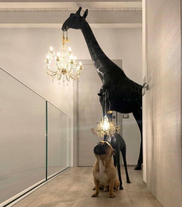 Giraffe In Love M Qeeboo, dessinée par Marcantonio, est une girafe qui soutient un lustre en style Marie-Thérèse, dans la dimension de 2,66 m. Une dimension qui lui permet d'entrer dans la maison de tout le monde. Audacieuse et élégante, elle sera naturellement au centre de l'attention de tout salon. La nouvelle version a été améliorée dans la qualité d'éclairage, en ajoutant un variateur pour créer la juste atmosphère et en ajoutant poids aux pieds postérieurs pour améliorer la stabilité. 12 LED x E14 x 8W MAX non incluses.