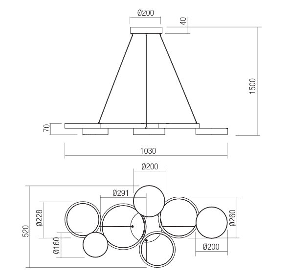 Cronos Redo Group est une lampe à suspension pour intérieurs, équipée de LED SMD, structure en aluminium et métal peint en blanc mat, noir mat ou finition bronze, diffuseurs en acrylique blanc satiné. LED integrée 65W 3000K 9393lm CRI 90 Dimmable.