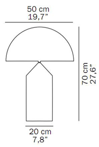 Créée en 1977, la lampe de table Atollo illustre le talent du regretté Vico Magistretti (1920-2006). Ce chantre de la pureté formelle n'avait de cesse d'inventer un design absolu et durable. Atollo raconte l'attirance du grand designer italien pour les volumes géométriques forts et majestueusement équilibrés. Le grand abat-jour (50 cm de diamètre) semble flotter au-dessus de la base conique. Les volumes primitifs et proportionnels sont mis en évidence par la lumière qui opère un jeu de clair-obscur. Atollo se caractérise par une recherche de simplicité : entièrement réalisée en aluminium verni, elle est dénuée de tout détail ou particularité technique : la quintessence du design selon Magistretti pour qui le raffinement s'envisage dans la transparence des lignes. L'oeuvre devient ainsi un élément essentiel de pureté, un modèle de validité permanente. Si cet objet, qui remporta le Compasso d'oro en 1979, s'expose au sein des plus prestigieux musées (MoMA...), il poursuit aussi son destin d'objet contemporain destiné aux intérieurs d'aujourd'hui. Atollo est munie d'un dimmer qui permet de varier l'intensité lumineuse. Se décline en noir et en blanc. Ampoules fournies: max 2x40W E27 LED + 2x10W E14 LED (dimmer).
