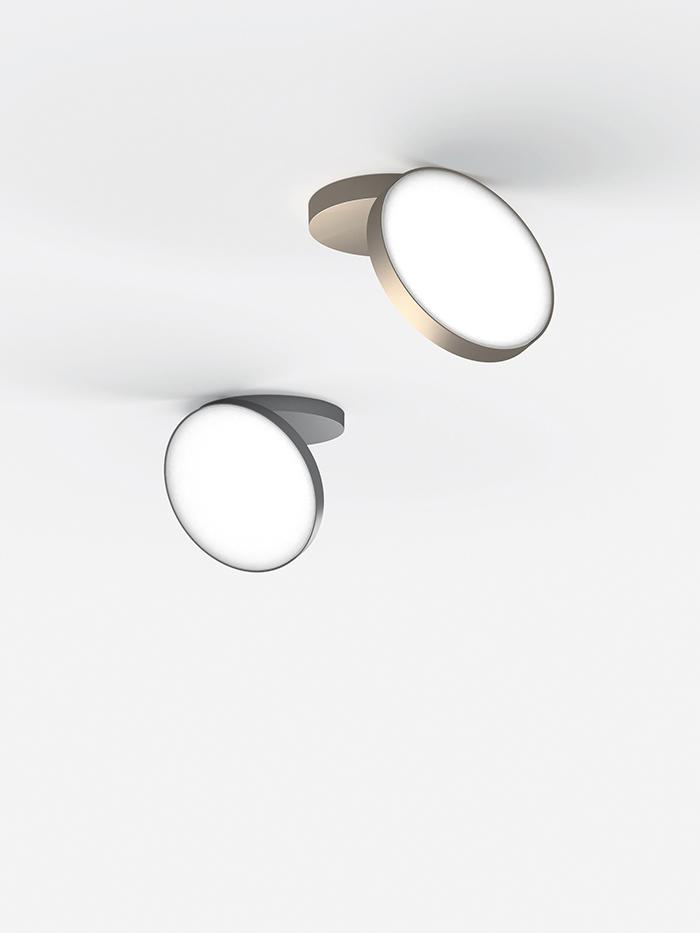 Venere Rotaliana créant une lumière diffuse peut s’appliquer au mur ou au plafond. La source à diode électroluminescente, d’une grande efficacité lumineuse, est dimmable. Le corps, en deux éléments superposés et articulés entre eux, est fait d’une fusion d’aluminium, tandis que le diffuseur est en polycarbonate opalin moulé par injection. La lampe, d’une minceur élégante, s’inscrit parfaitement dans les surfaces des murs, mais peut également s’ouvrir jusqu’à 96° et tourner dans toutes les directions, de façon à orienter la lumière dans la direction voulue. La forme circulaire de la lampe et son mouvement rappellent un oeil qui tourne pour regarder autour de soi ou bien l’oeil d’une Vénus au strabisme légendaire en faisant le charme. LED integrée 41W 3000K 2900lm CRI 90.