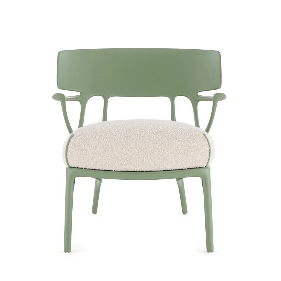 KARTELL fauteuil A.I. LOUNGE (Vert / Blanc - Tissu Riccio Bouclé et technopolymère thermoplastique recyclé soft touch)