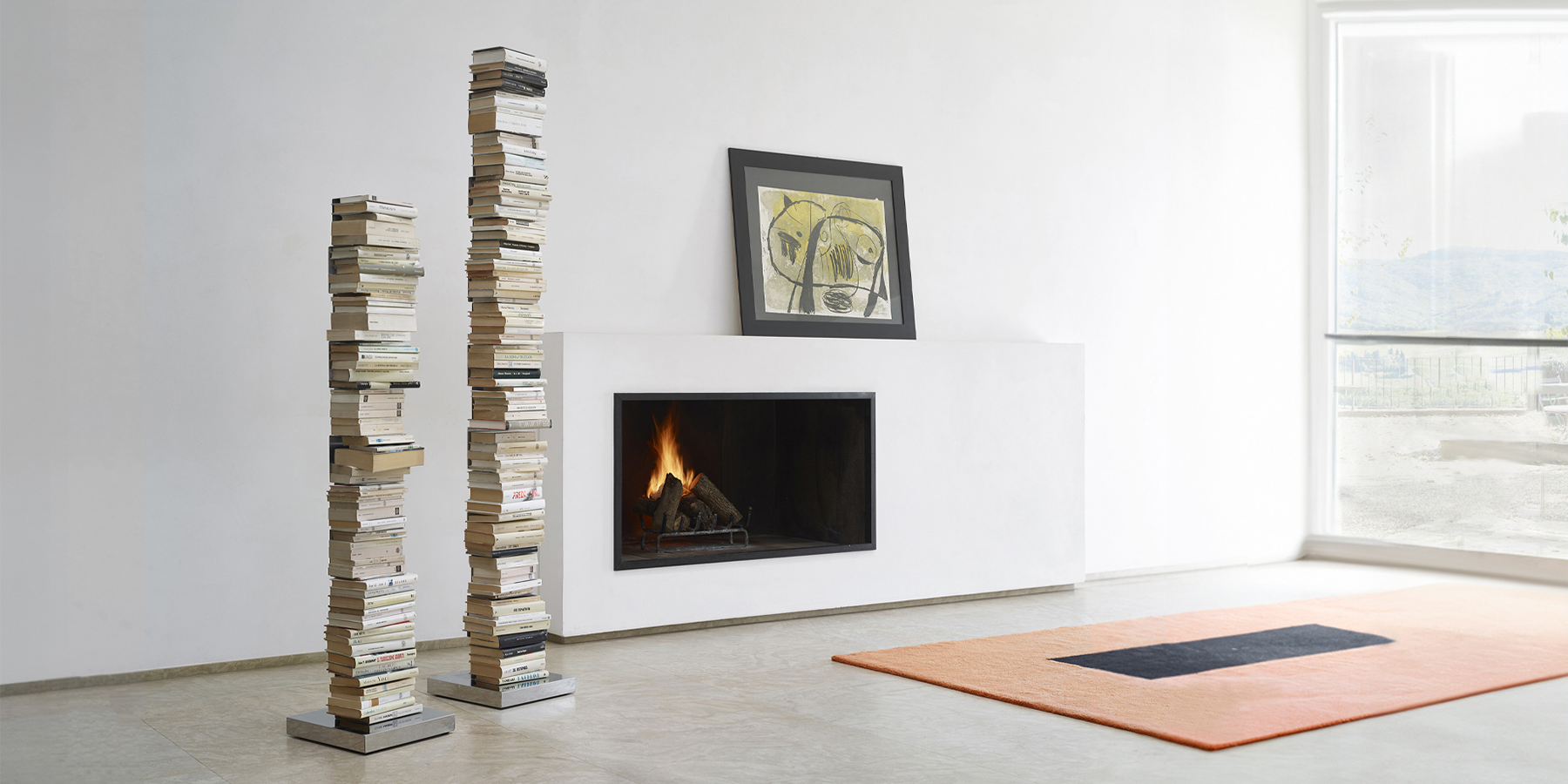 OPINION CIATTI bibliothèque avec éclairage à LED PTOLOMEO LUCE H 160 cm (Structure noire, base inox - Structure et étagères en fer laqué. base en acier inoxydable)